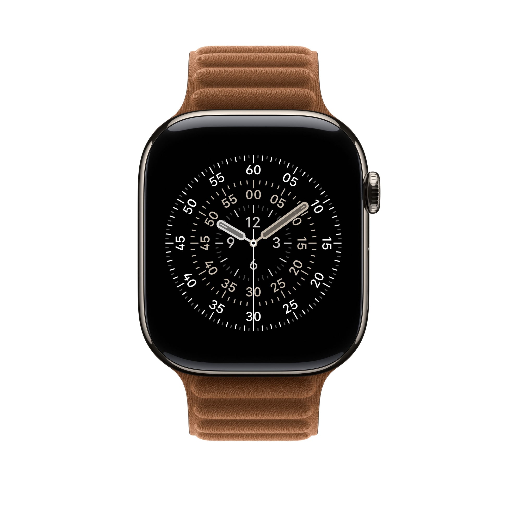 The Magnetic Link with FineWoven elegantly wraps around the wrist and magically attaches with moulded magnets that gently flex to help maintain security and comfort throughout the day. Made from a durable micro-twill, the FineWoven material has a soft, suede-like feel. It was also designed with the earth in mind — made from 68% post-consumer recycled content and significantly reducing carbon emissions compared to leather.