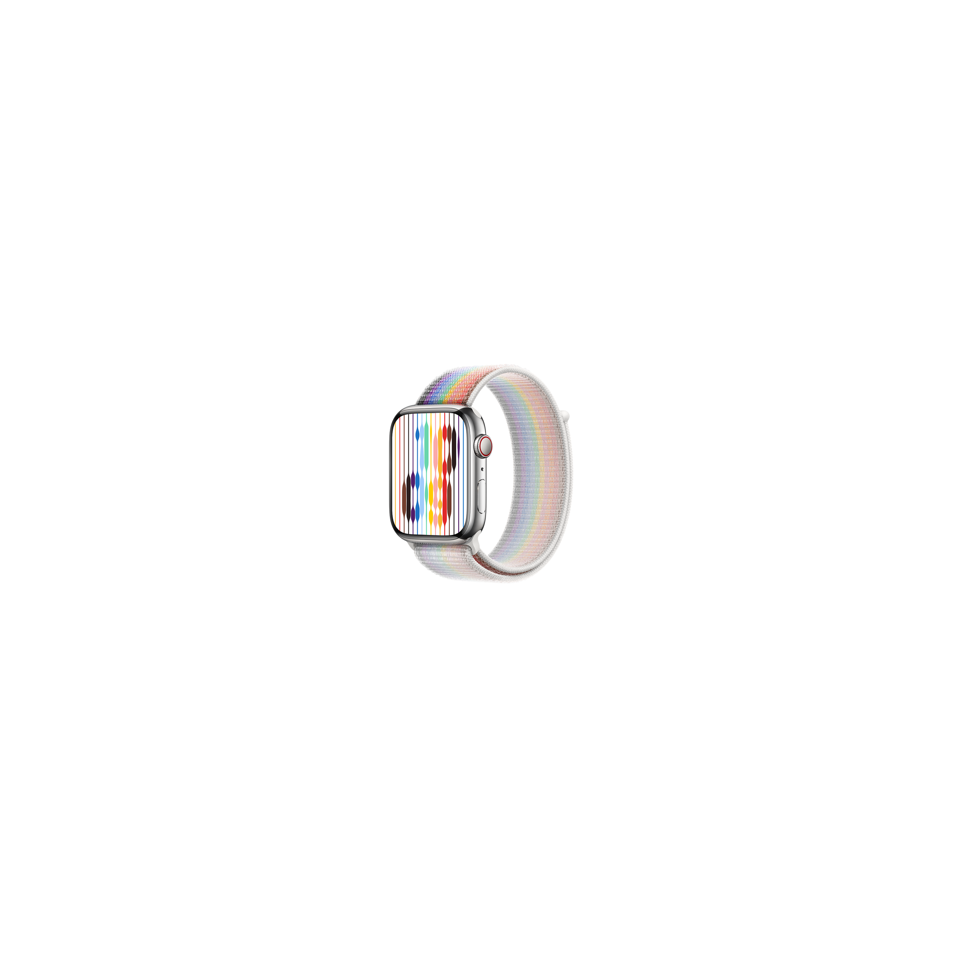 Soft, breathable and lightweight, the Sport Loop features a hook-and-loop fastener for quick and easy adjustment. The double-layer nylon weave has dense loops on the skin side that provide soft cushioning while allowing moisture to escape. This weave is made with 82% recycled yarn, some of which contains material from discarded fishing nets. This strap is carbon neutral. The Sport Loop contains 45% recycled content by weight, 100% of manufacturing electricity is covered by clean energy, and 50% or more of all carbon-neutral Apple Watch products are shipped without aeroplanes.
