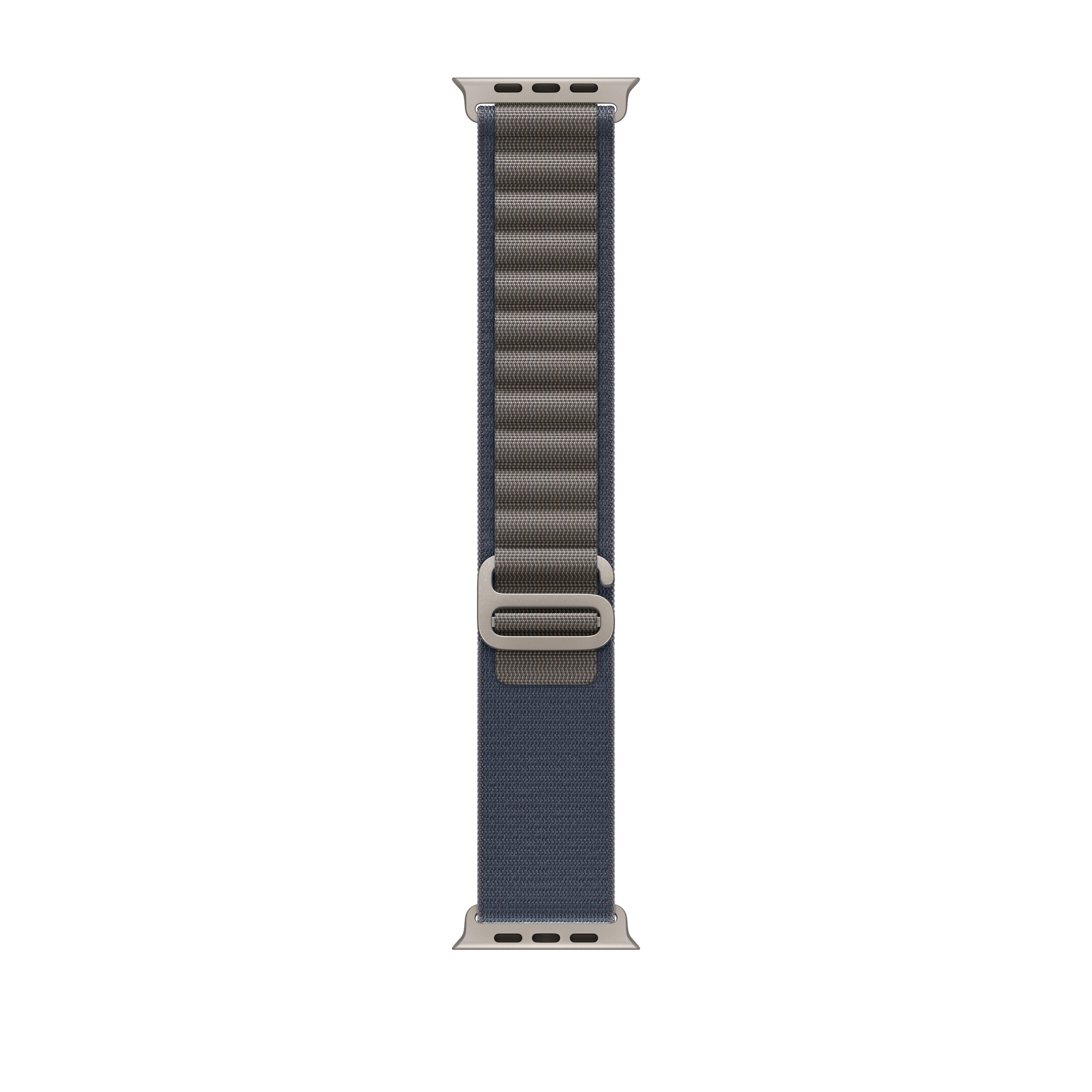 The rugged Alpine Loop is made from two textile layers woven together into one continuous piece without stitching. High-strength yarns reinforce the top loops, and the corrosion-resistant titanium G-hook slides easily into the loops for secure fit. This strap is carbon neutral. The Alpine Loop contains 43% recycled content by weight, 100% of manufacturing electricity is covered by clean energy, and 50% or more of all carbon-neutral Apple Watch products are shipped without aeroplanes.