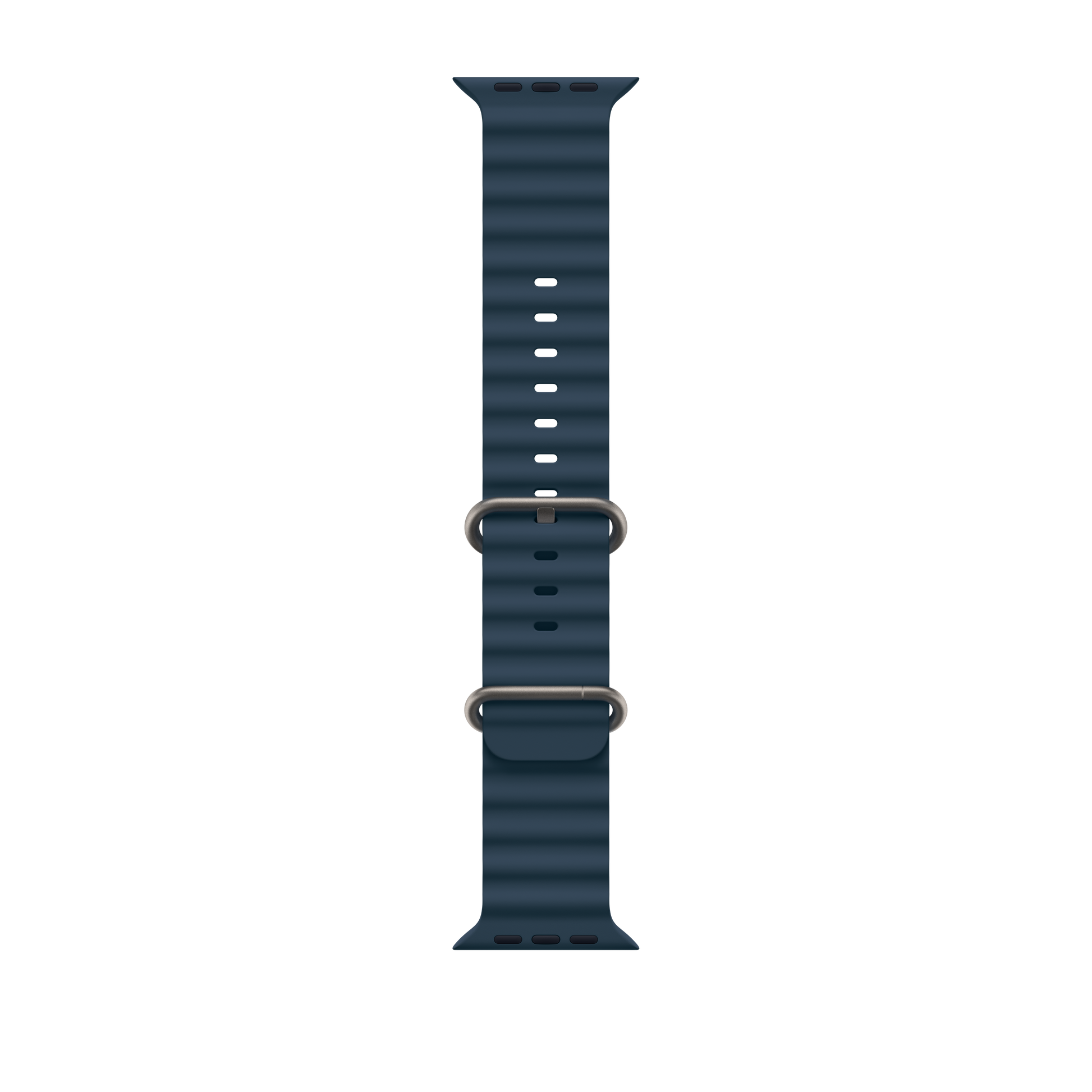 The Ocean Band is moulded in a high-performance elastomer with a tubular geometry allowing it to stretch for a perfect fit, even over a wetsuit. The titanium buckle and adjustable loop secure the strap during high-speed water sports.